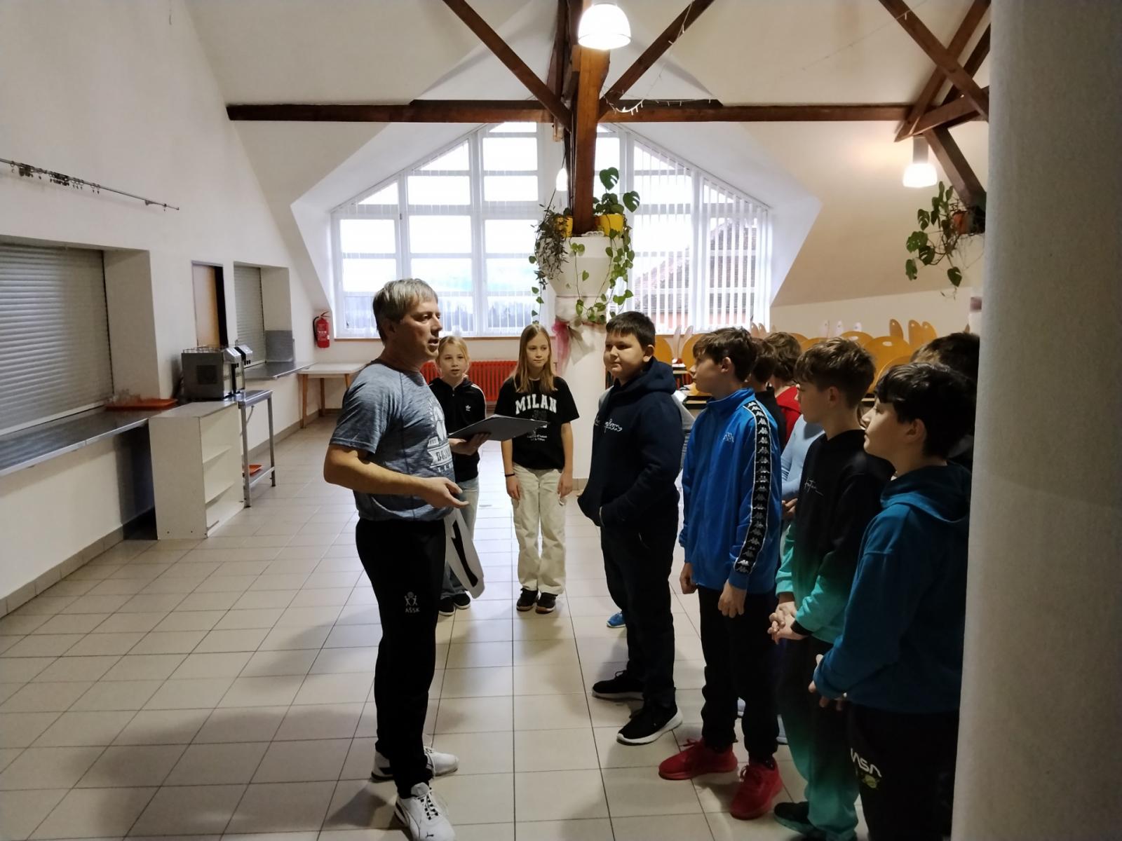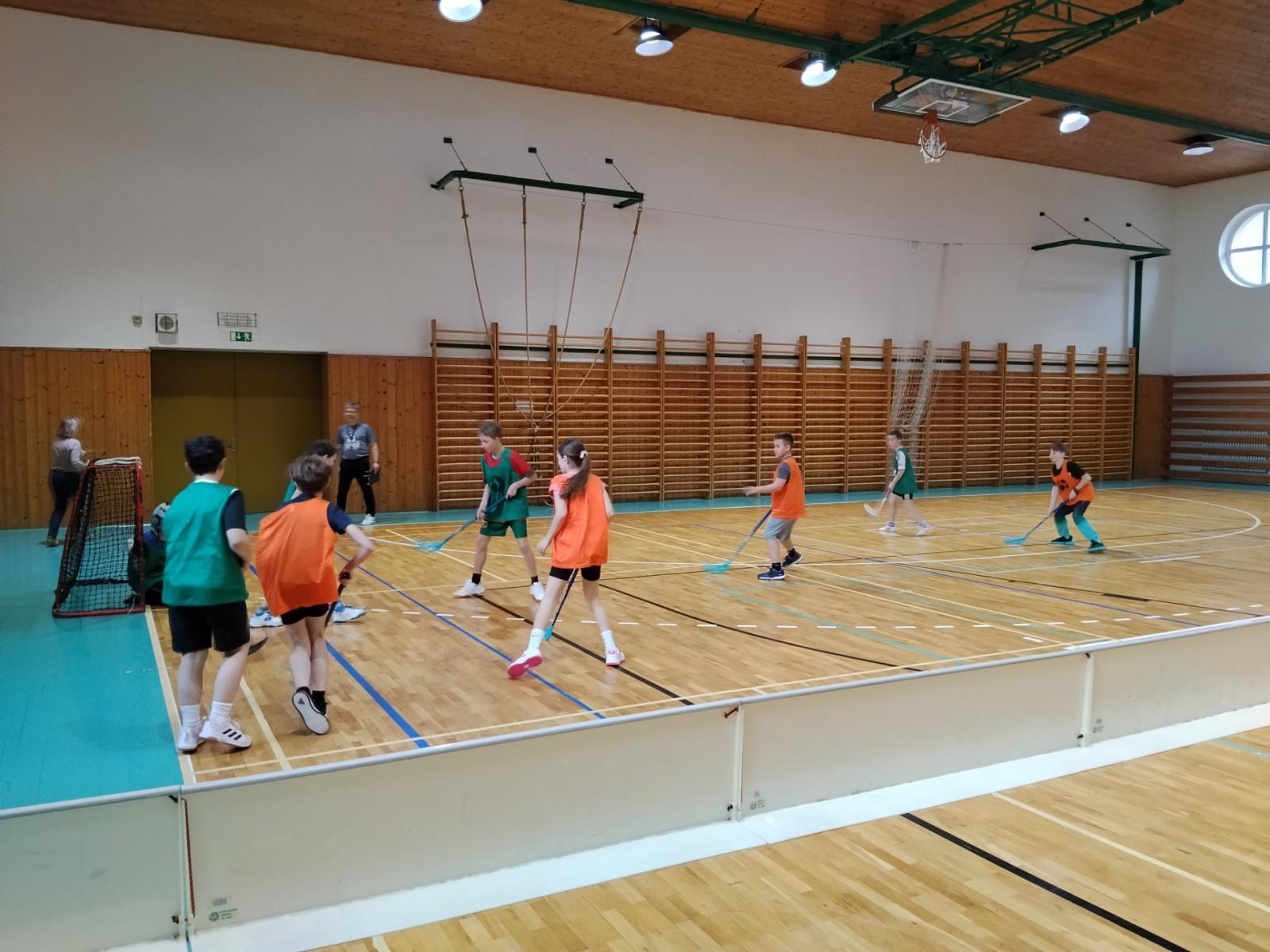 Nejprve jsme si prohlédli areál školy a následně jsme se odebrali do haly, kde už bylo pro nás připraveno sportovní vyžití v podobě minikopané, florbalu a vybíjené.
