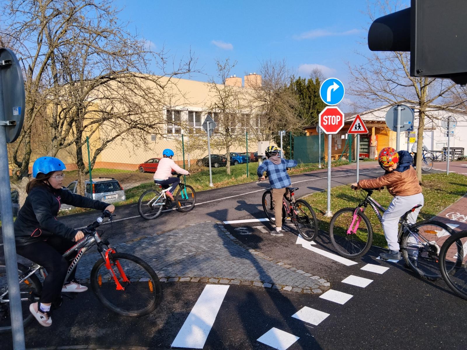 Nejprve si zopakovali své znalosti ze září, kdy absolvovali 1. část výuky. Poté už je čekalo ověření znalostí formou testu a jízdy na kole.